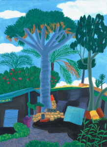 The emotional power of this environment is reflected in her richly colored works: tropical plants, rugged volcanic formations, and the deep blue of the Atlantic – all captured in bold, expressive compositions that speak their own visual language.